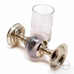 Add a touch of glamour to your space with our expertly-crafted copper and glass candle holder. The crackled glass detail of this votive, along with flickering candlelight, will create a warm and inviting ambience in your home. This hurricane stands on a copper base, hand-hammered by skilled Tunisian craftsman into a beautiful, vintage-inspired shape. The blown glass bulb on the bottom of each candle holder adds to the elegant, antique style of this piece